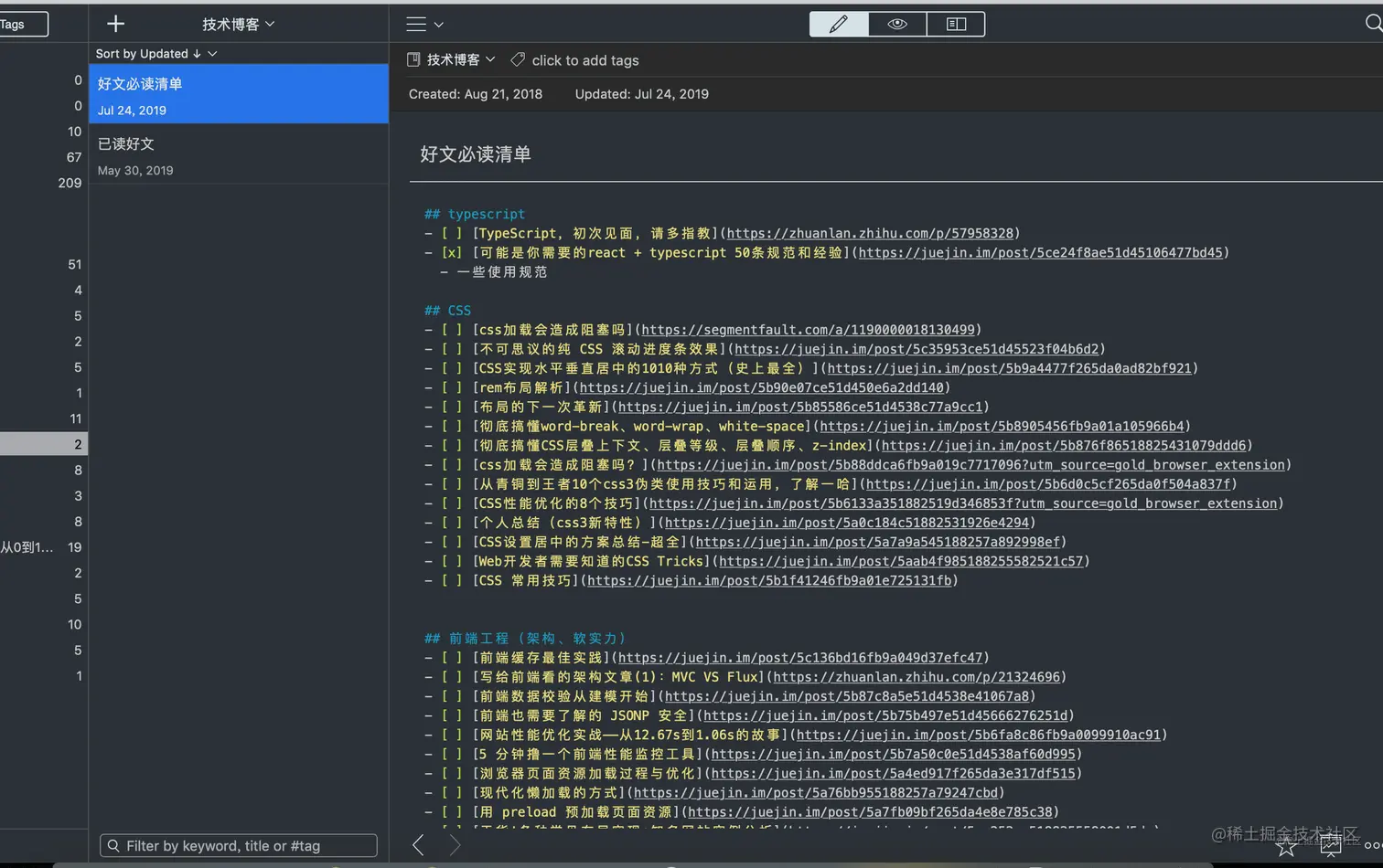 你是怎么学习前端的呢?能不能共享一下学习方法。一句话也挺触动我的,我真的不算是什么大佬,对于学习前端知识,我也不能说是掌握了什么捷径。当然,我个人的学习方法这篇文章已经在写了,预计这周末会在我个人公众号发布。而在此之前,我想展(gong)示(xiang)一下,我平时浏览各个技术网站,所记录下来的文章。如果你能做到每日消化一篇,或许,你只要一年,就能拿下各个大厂 offer!