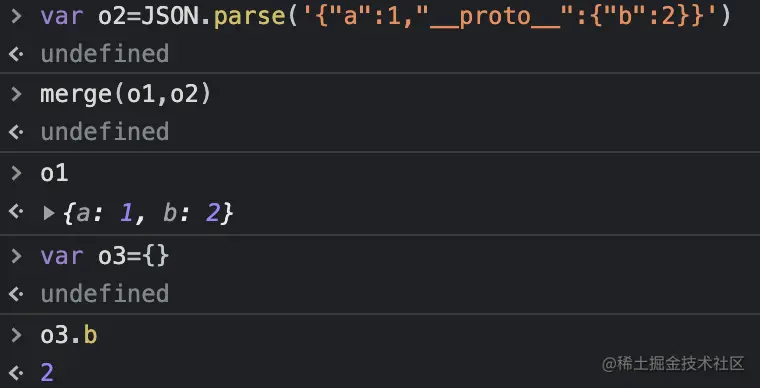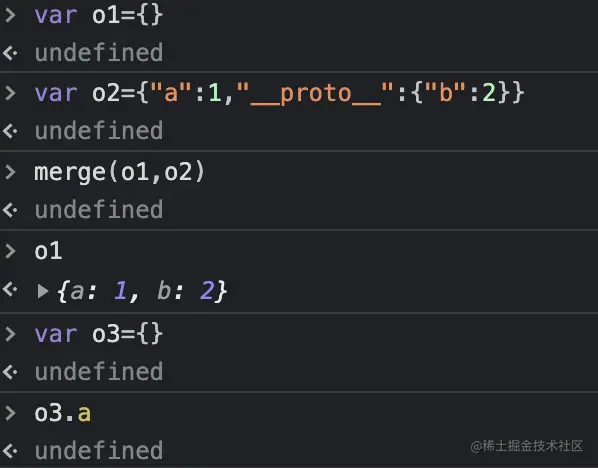 o3的b有了赋值,说明通过o2的__proto__污染了{}