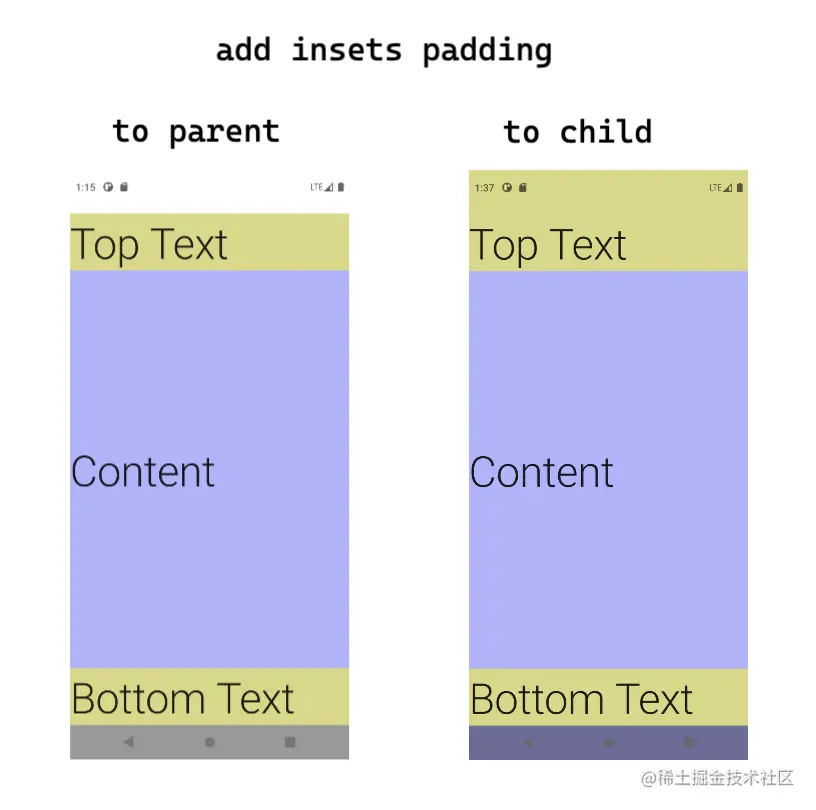 左边是把insets padding加在整体布局的情况, 如果用的是system bars的话, 和默认UI效果是一样的.