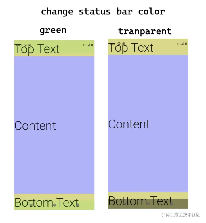 这里改的是system bars, 也即status bar和navigation bar都改了. 也有单独只改一个的方法.