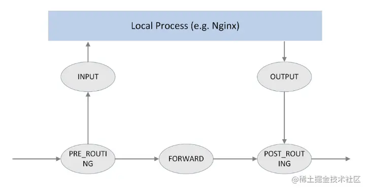 // include/uapi/linux/netfilter_ipv4.h#define NF_IP_PRE_ROUTING 0 /* After promisc drops, checksum checks. */#define NF_IP_LOCAL_IN 1 /* If the packet is destined for this box. */#define NF_IP_FORWARD 2 /* If the packet is destined for another interface. */#define NF_IP_LOCAL_OUT 3 /* Packets coming from a local process. */#define NF_IP_POST_ROUTING 4 /* Packets about to hit the wire. */#define NF_IP_NUMHOOKS 5