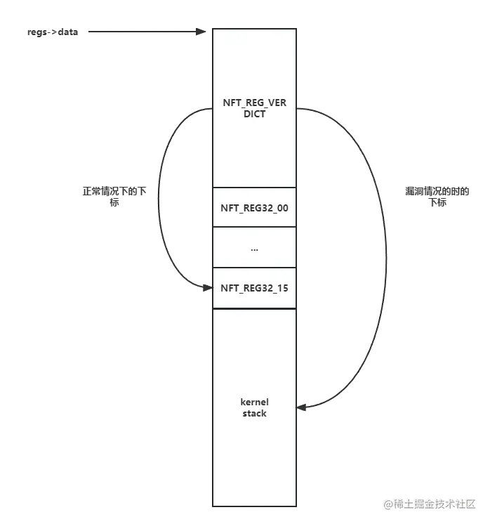 因此整型溢出结合越界就能够使我们访问到内核栈上的其他数据,如下图所示。