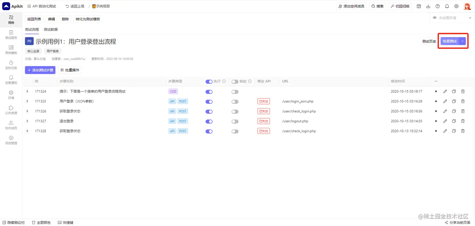 创建好测试用例之后,点击 执行测试 按钮即可运行测试,系统会自动按顺序执行测试流程里的每个测试步骤并且得到详细的测试报告。
