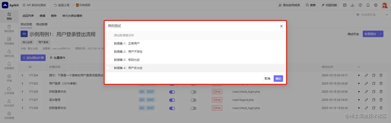 如果您创建了多组测试数据(多个数据集),那么系统会自动将测试报告按照测试数据集分类展示。