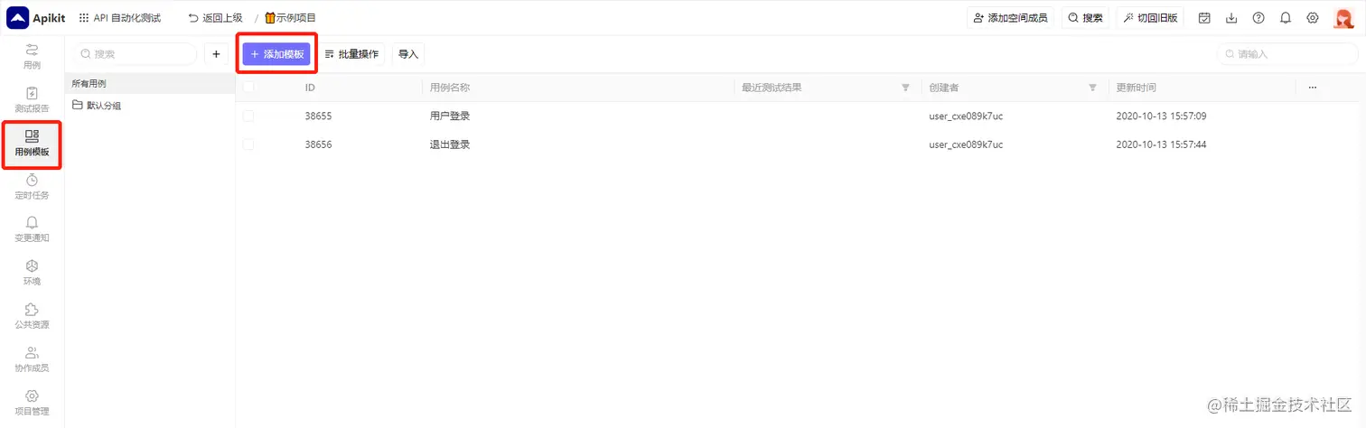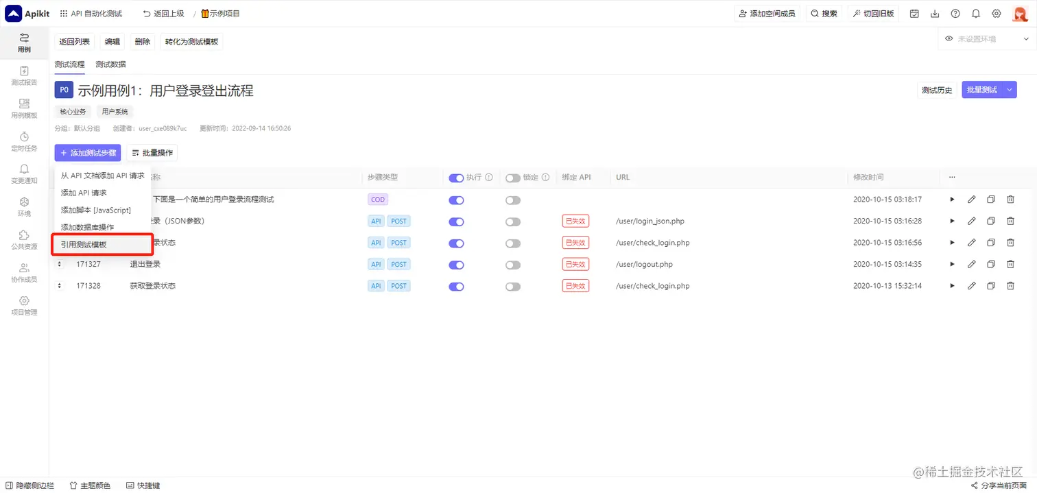 您可以将重复的测试步骤添加到测试模板库中,并且在测试用例中引用测试模板来实现复用测试步骤的目的。如将用户登录、清理数据库等操作作为测试模板,并将该用例引入到多个测试用例中,减少不必要的工作。