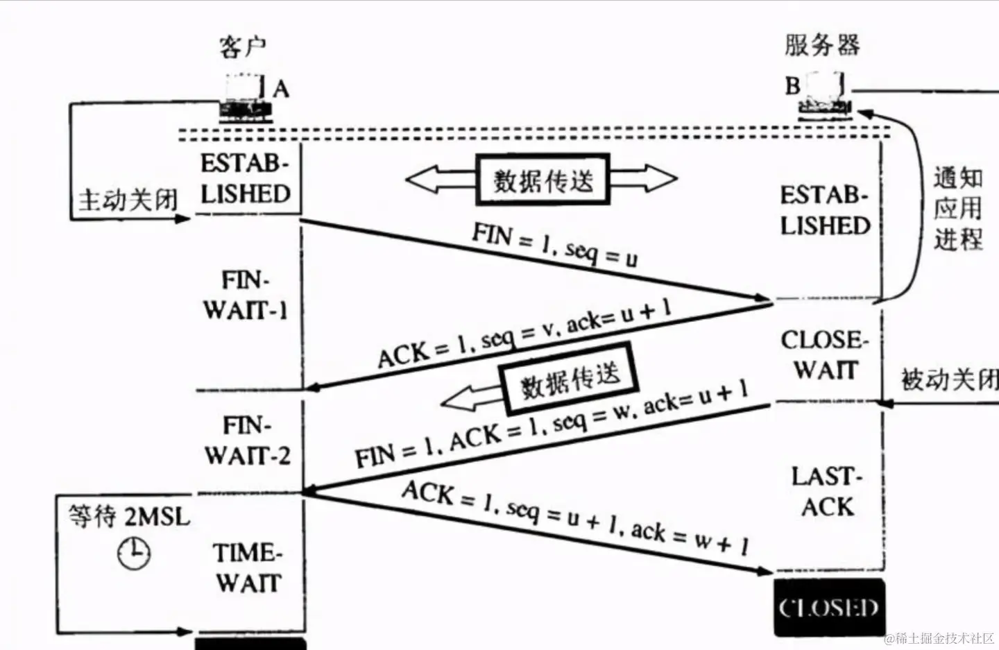 第四次挥手:主机A收到主机B发送的FIN报文段,向主机B发送ACK报文段,然后主机A进入TIME_WAIT状态;主机B收到主机A的ACK报文段以后,就关闭连接;此时,主机A等待2MSL后依然没有收到回复,则证明主机B已正常关闭,那好,主机A也可以关闭连接了。