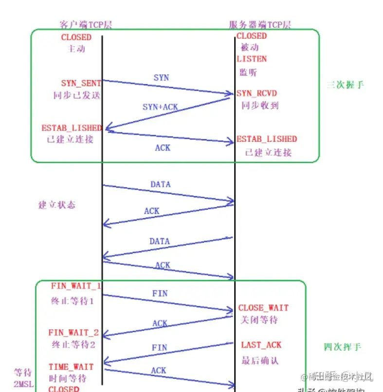 2. 可靠的关闭TCP连接。在主动关闭方发送的最后一个 ack(fin) ,有可能丢失,这时被动方会重新发fin,如果这时主动方处于 CLOSED 状态 ,就会响应 rst 而不是 ack。所以主动方要处于 TIME_WAIT 状态,而不能是 CLOSED 。另外这么设计TIME_WAIT 会定时的回收资源,并不会占用很大资源的,除非短时间内接受大量请求或者受到攻击。
