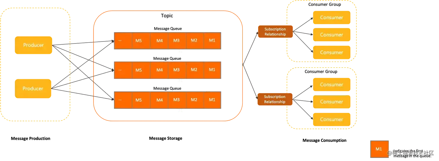 RocketMQ的架构和Kafka非常类似,只不过将partition的概念替换成了message queue,且去掉了leader-follower架构,由实际的broker的master-slave来保证高可用。详情可看