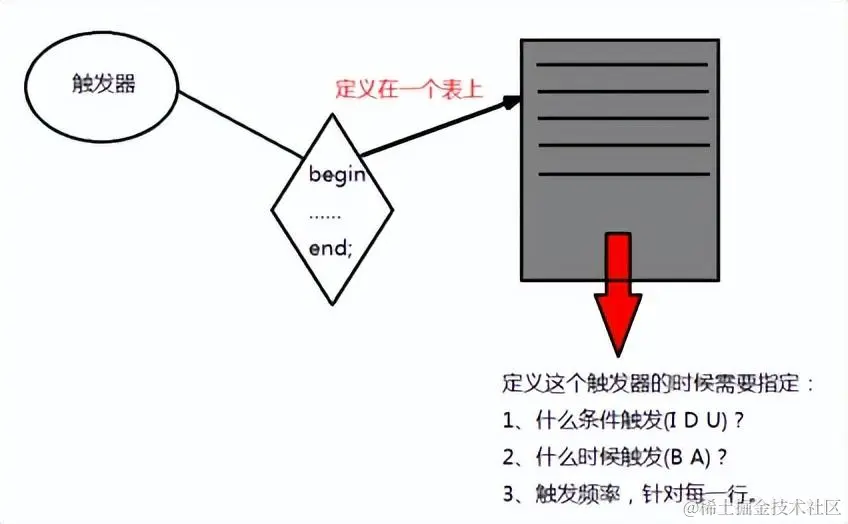 3. 触发器是针对每一行的;对增删改非常频繁的表上切记不要使用触发器,因为它会非常消耗资源。