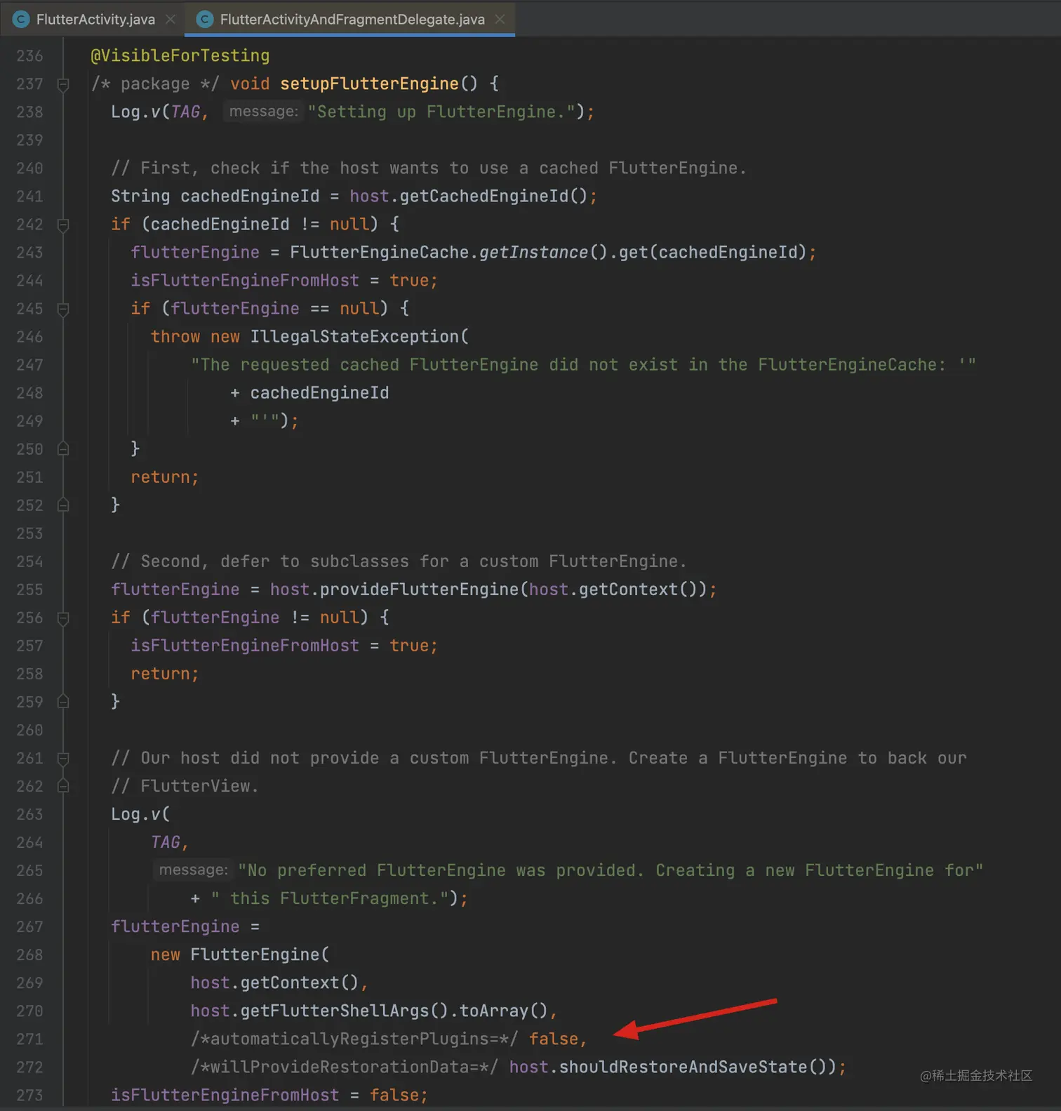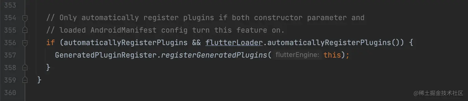 如果没有手动配置automaticallyRegisterPlugins属性的话,则默认值为true,也可以在AndroidManifest.xml文件中进行配置手动关闭自动注册插件属性,具体代码如下:
