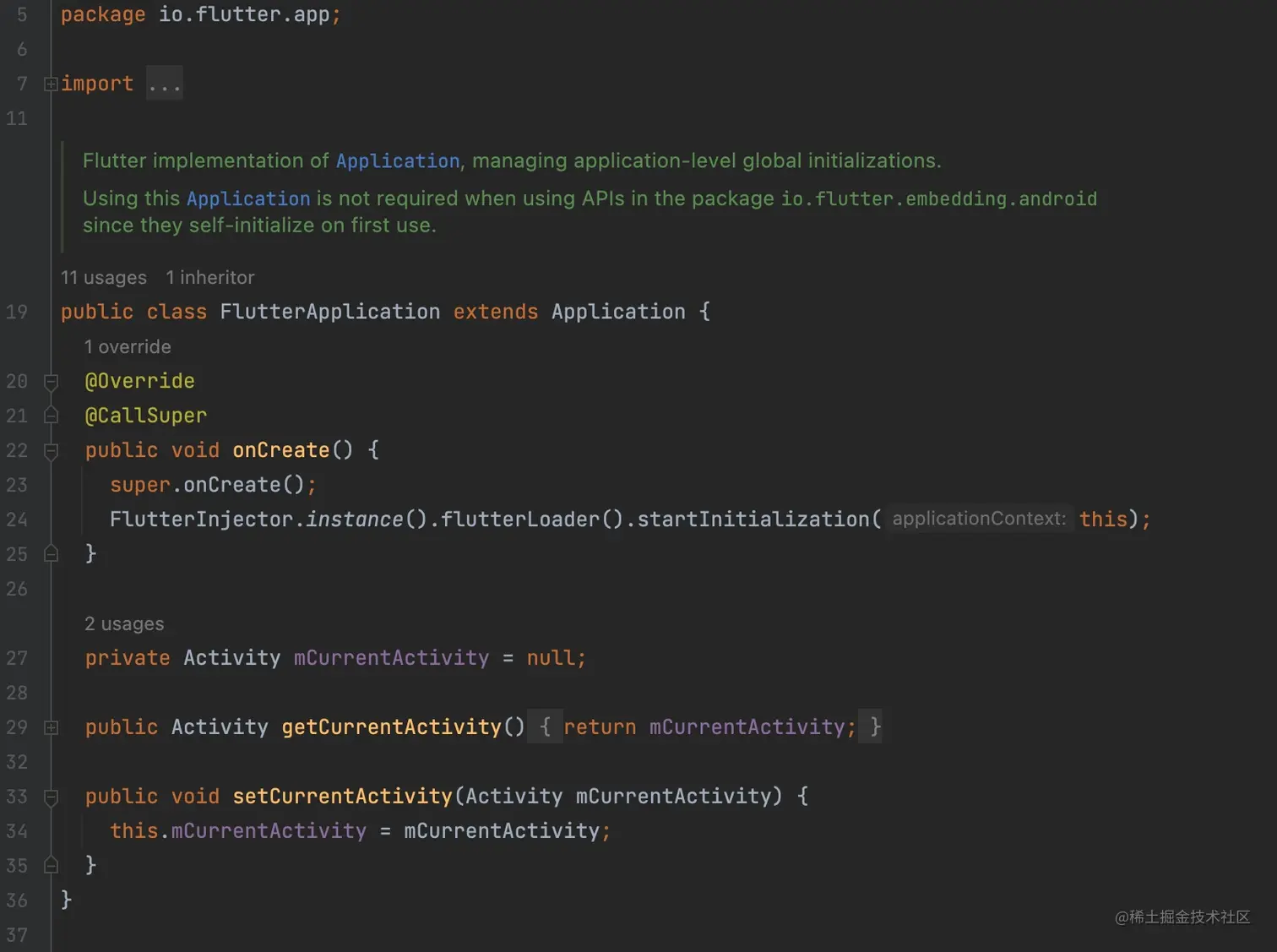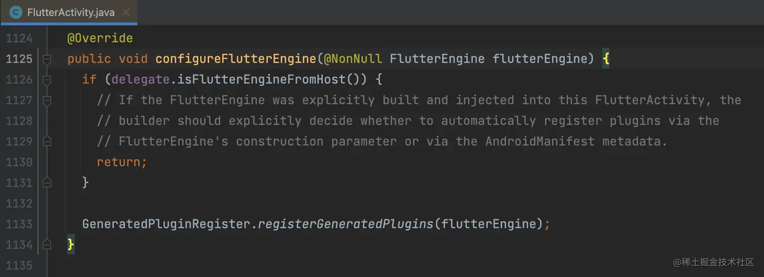 不难看出,Flutter引擎其实是在FlutterActivity中进行初始化的,如果缓存引擎id不为空的话会去获取缓存的引擎,否则会去获取自定义引擎,如果自定义引擎也为空,则会生成一个默认引擎。