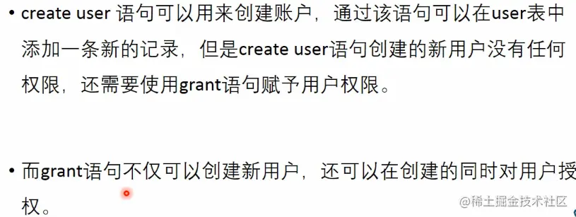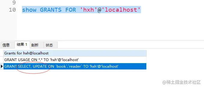 一共有两条记录,第一条是通过create创建的用户,只有登陆权限。第二条是后来我们通过grant语句为该用户赋予权限。