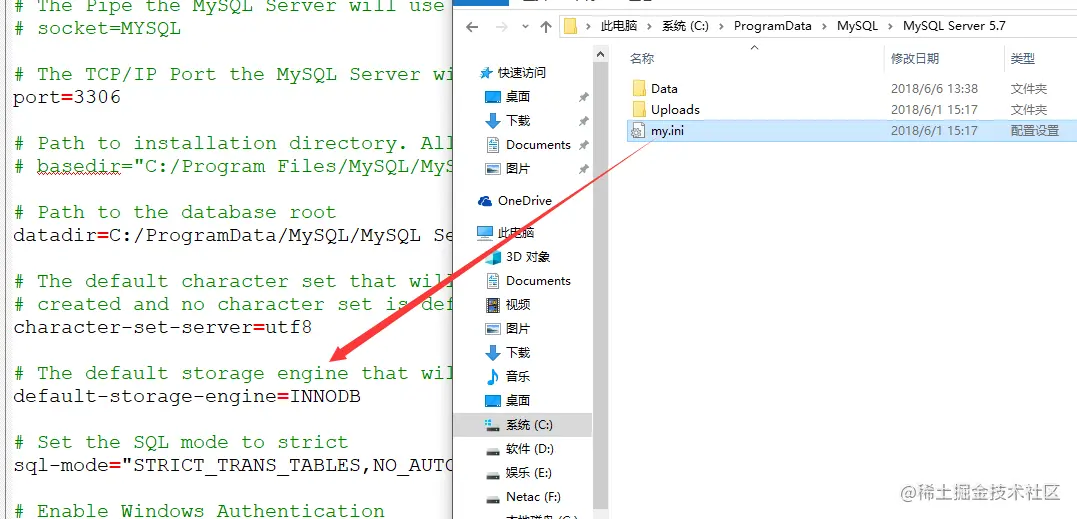 需要注意的是客户端设置的存储引擎并不会作用于整个服务器,要作用整个服务器的话则需要更改配置文件。