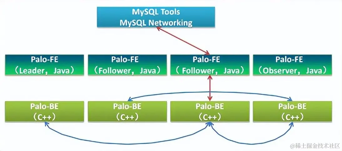 Doris的系统架构如下,Doris主要分为FE和BE两个组件。