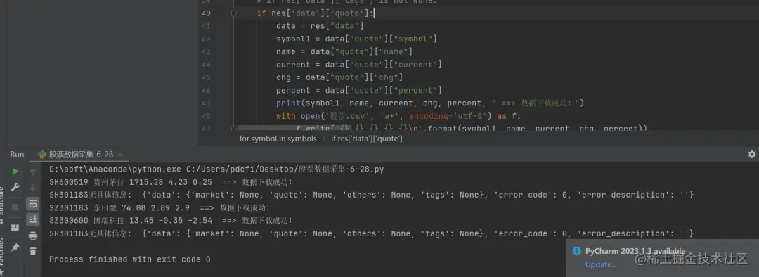print(symbol1, name, current, chg, percent, " ==> 数据下载成功!")