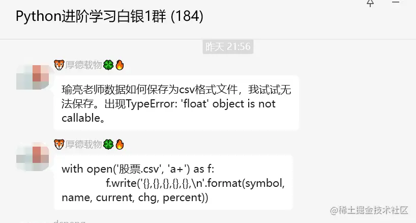 【提问补充】温馨提示,大家在群里提问的时候。可以注意下面几点:如果涉及到大文件数据,可以数据脱敏后,发点demo数据来(小文件的意思),然后贴点代码(可以复制的那种),记得发报错截图(截全)。代码不多的话,直接发代码文字即可,代码超过50行这样的话,发个.py文件就行。