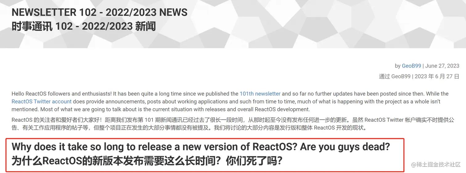 在通讯报告中,ReactOS 团队解释了为何从 2021 年以后不再发新版本,工作的重点转移到质量发布上,不再按季度发布节奏。由于目标是进行实质性的大型功能更新,所以目前仍不清楚下一个版本会在何时发布。