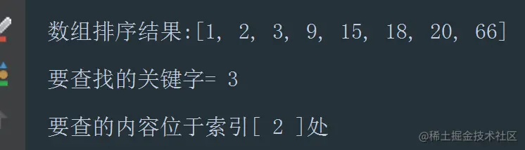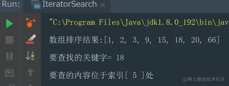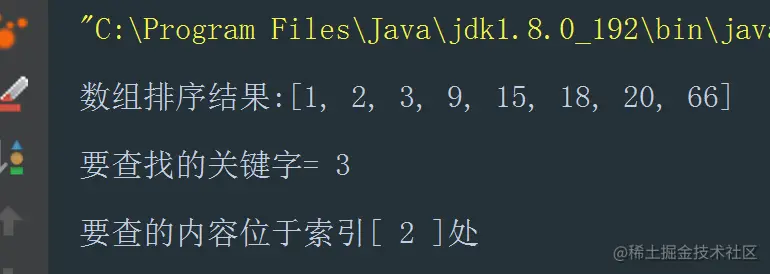 //如果数组的中间值等于要查找的关键字,则表示直接就找到了要查找的内容