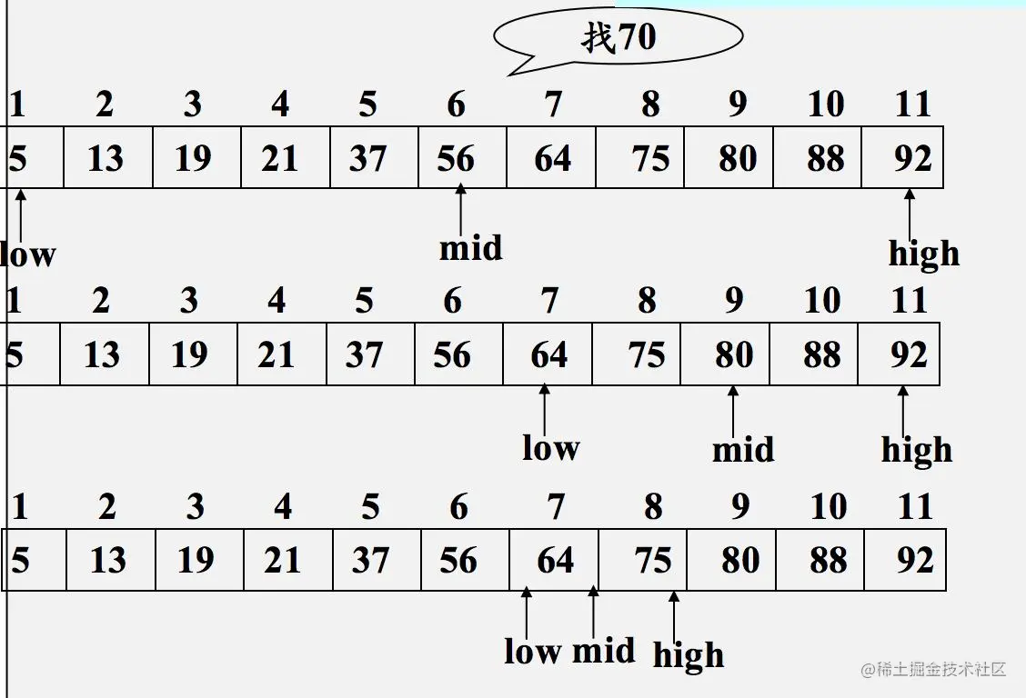 - 如果key = middle元素,则直接返回中间的索引位置;