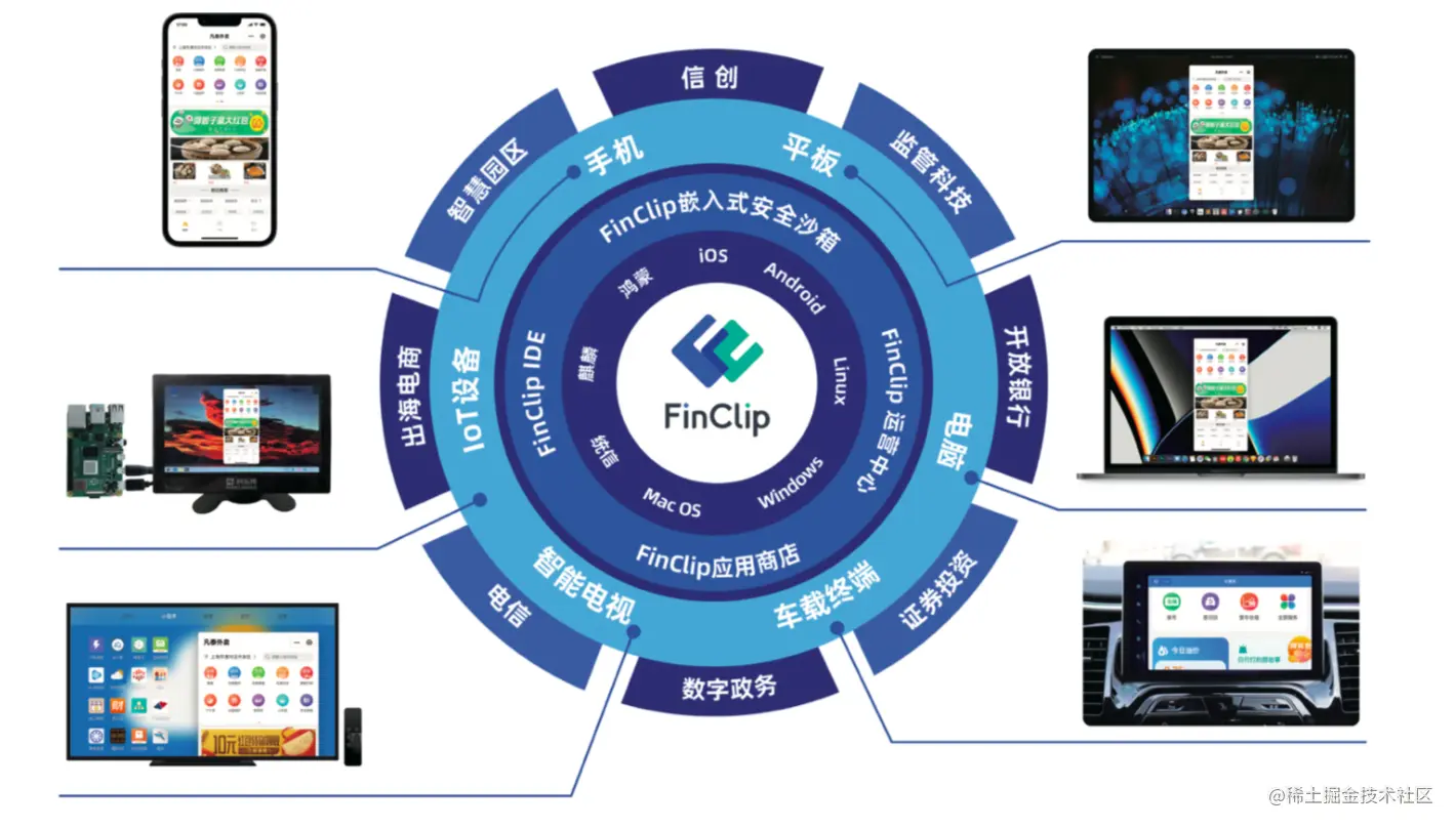 简单来说, FinClip 是一款小程序容器,不论是移动 App,还是电脑、电视、车载主机等设备,在集成 FinClip 小程序 SDK 之后,都能快速获得运行小程序的能力。