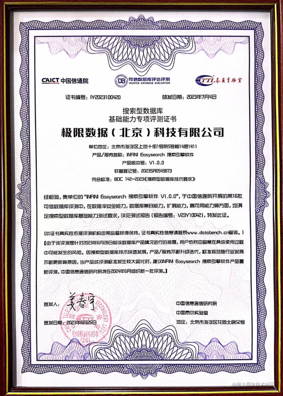 国内搜索型数据库最近几年发展迅速,关键技术逐渐突破,应用场景和数据规模也逐年上升,已经成为企业必不可少的核心基础设施,产业生态也日益繁荣。极限科技作为国内搜索型数据库产品厂商第一梯队的杰出代表,同时也是行业标准的起草单位之一,此次获得首批测评通过,不仅代表着对 INFINI Easysearch 搜索型数据库软件 Easysearch 的权威性肯定,更代表着极限科技在“搜索数据库”产品的研究与创新上,取得了新的里程碑。