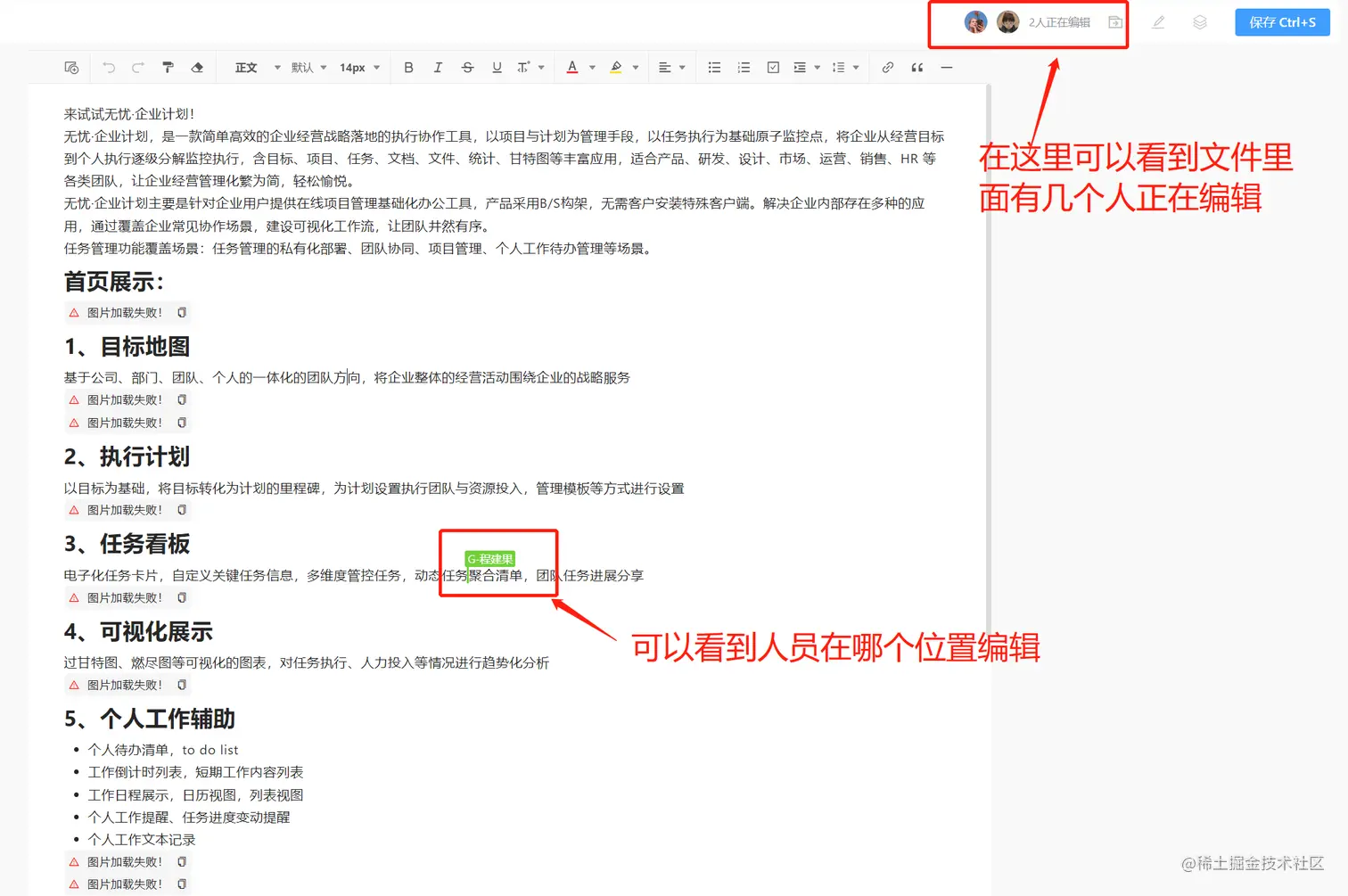无忧企业文档可以实现文件的共享和协作编辑。企业内部的员工可以通过无忧企业文档轻松地共享和查看各种类型的文件,包括Word文档、Excel表格、PPT演示文稿等。同时,无忧企业文档还支持多人协作编辑,可以让多个用户同时对同一个文件进行编辑和修改,避免了因为版本不一致而导致的混乱和错误。