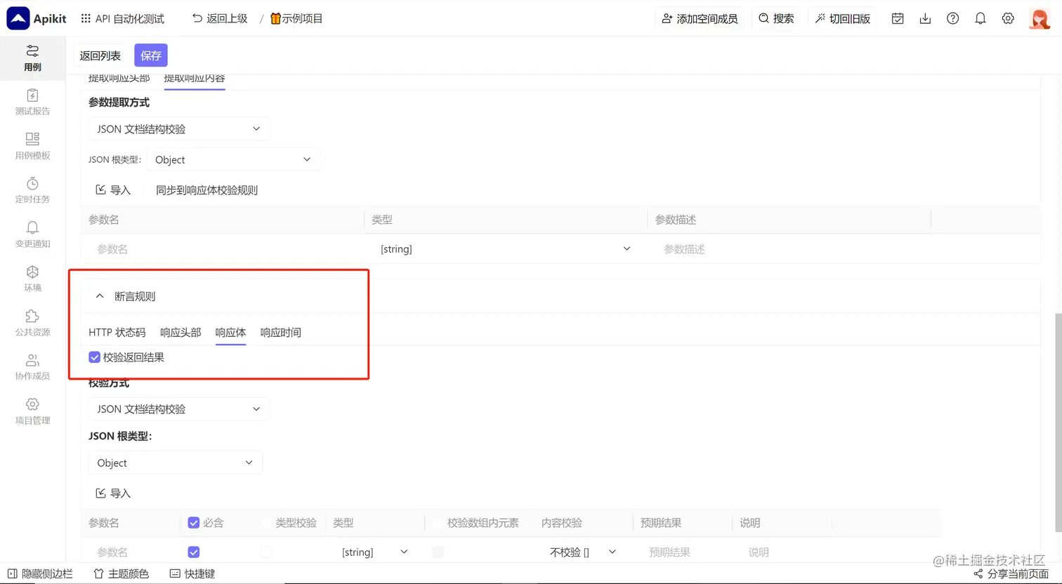 设置对参数的类型进行校验,返回结果的参数类型必须要等于预设的参数类型,否则提示测试失败。
