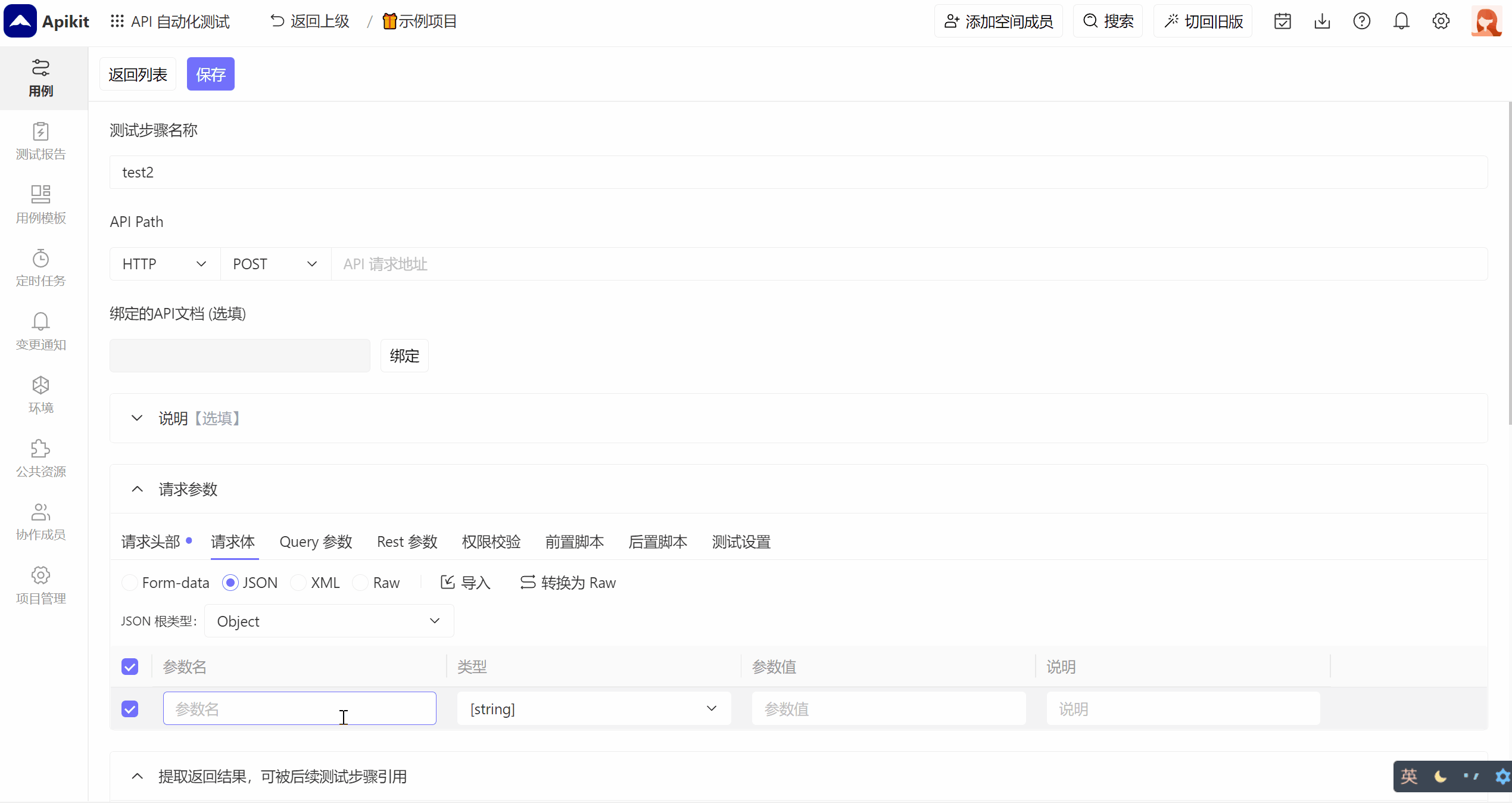 提取的返回结果 :可以将测试结果进行提取,并传递给后续测试步骤使用。比如将登录的token传递给后续测试步骤进行登录校验。