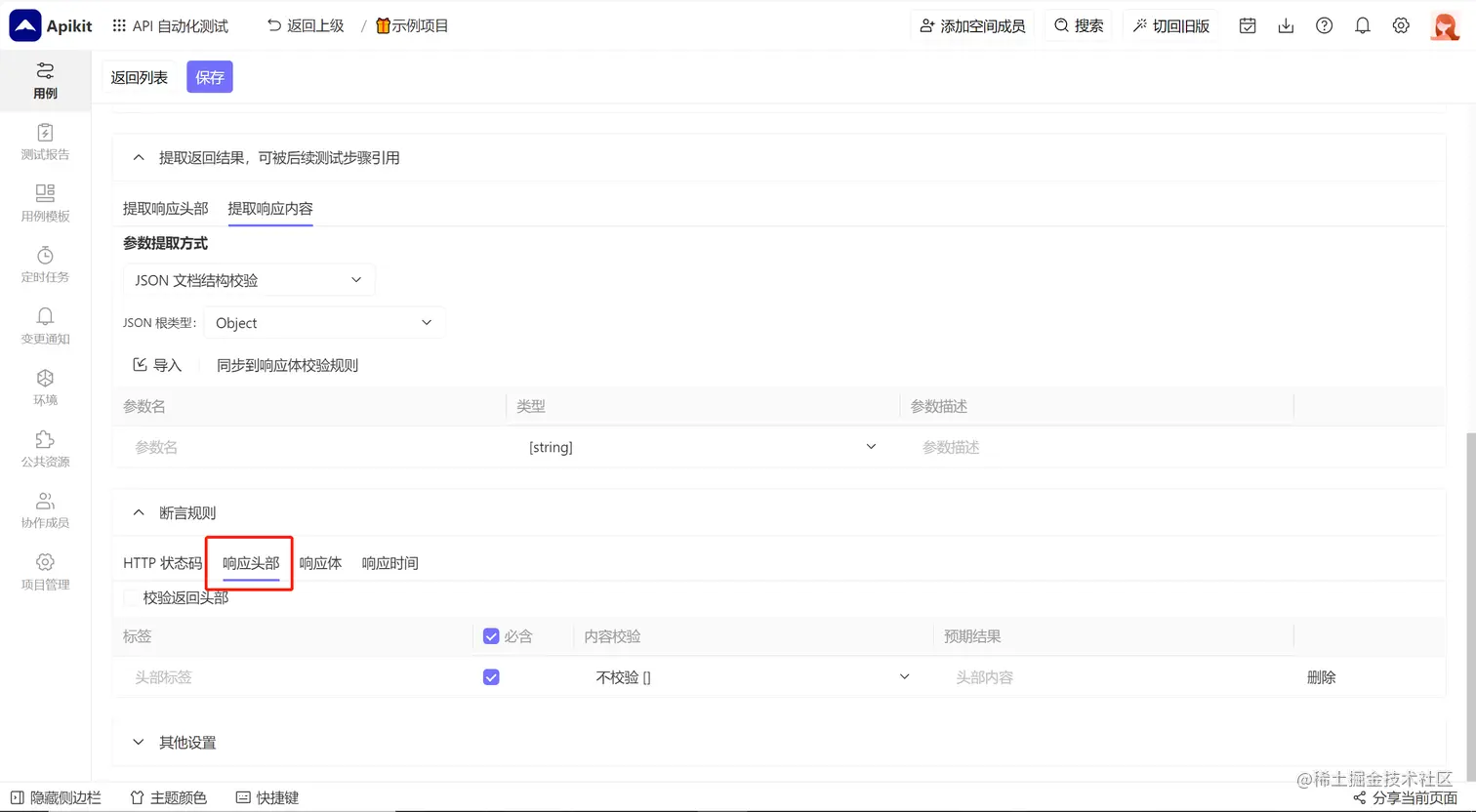 在提取返回参数一栏中,你可以选择需要提取的返回头部或者返回结果。