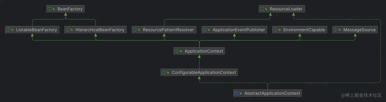 我们也可以不使用xml文件去初始化容器,所以我们先来看看ApplicationContext一个大体的继承结构是什么样子的:
