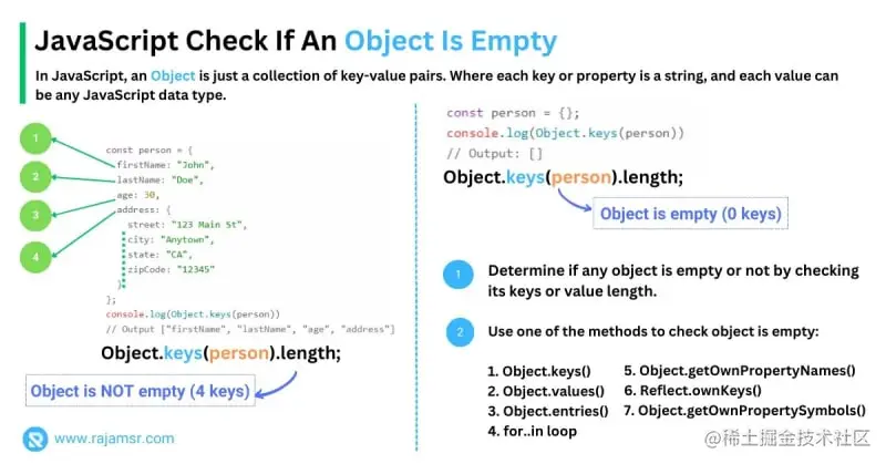 通过使用这些方法,您可以轻松检查 JavaScript 中的对象是否为空,并确保主动防止运行时错误。