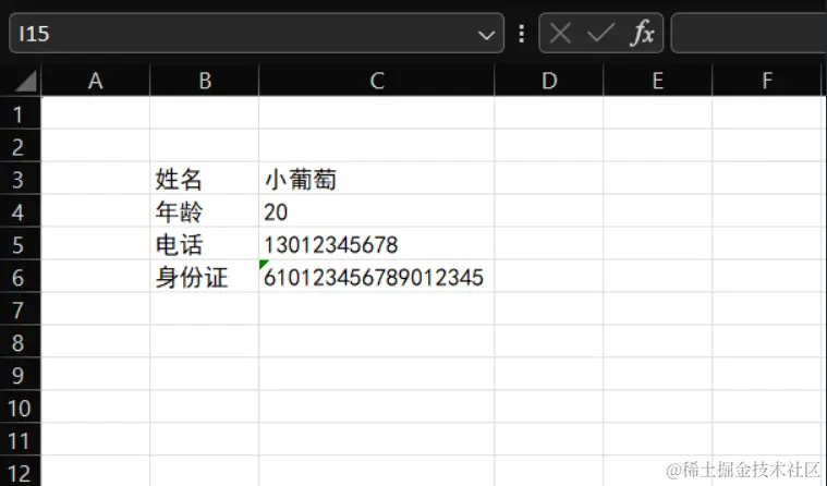 如Excel的表单内容如下图: