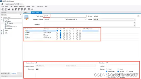 1)新建表及字段(数据库模型的创建,表的修改删除不做具体演示)