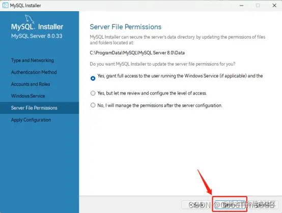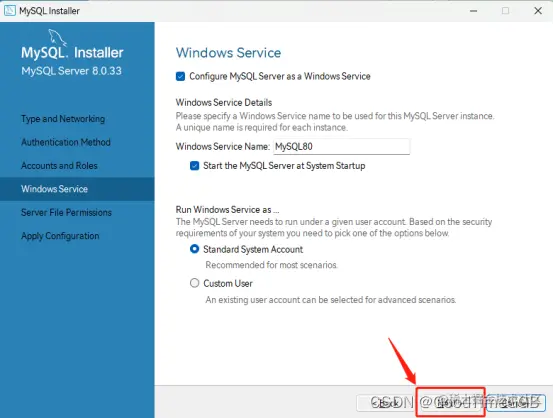 7)输入root账户的密码,并确认密码,然后点击“Next”按钮