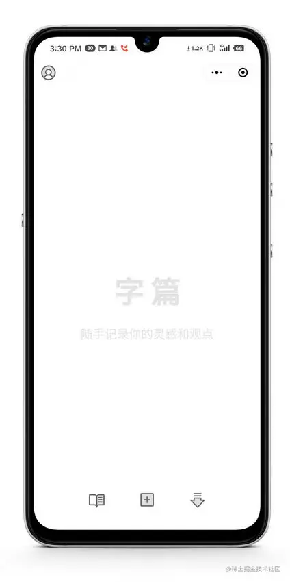 写作区我使用了 editor 组件,因为可能牵涉到一些富文本,打开小程序即进入写作界面,点击空白即可开始写,点击加号新增一篇,争取做到简洁方便易用。