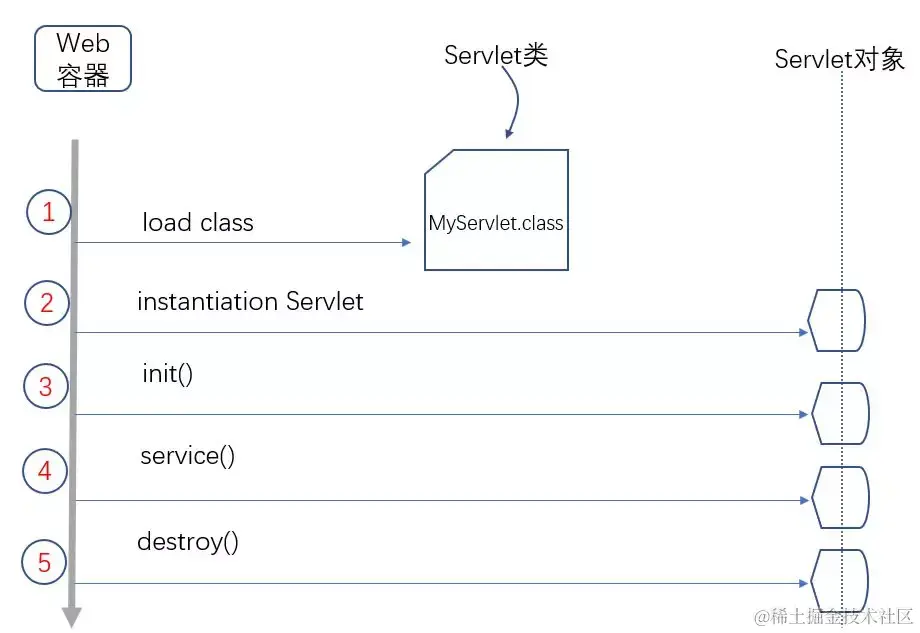下图为Servlet生命周期简要概图