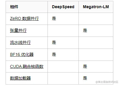 请注意,Megatron-LM 和 DeepSpeed 都有流水线并行和 BF16 优化器实现,但我们使用 DeepSpeed 的实现,因为它们集成进了 ZeRO。
