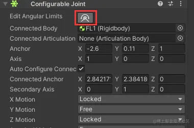 其中Free意味着约束不存在。比如XMotion Free,代表了两个刚体在X轴向可以相对随意移动。