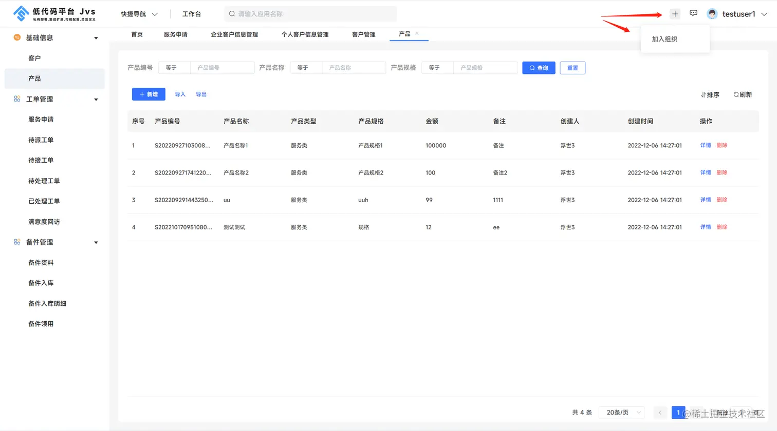 在多租户的模式下,用户是可以跨租户使用系统的,那么要关联多个租户,就点击加入组织的按钮