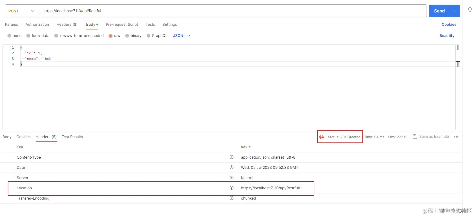 - 返回状态码201(Created),表示资源已成功创建;