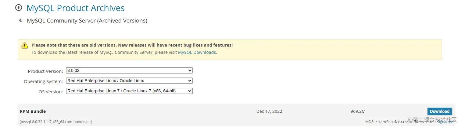 wget https://downloads.mysql.com/archives/get/p/23/file/mysql-8.0.32-1.el7.x86_64.rpm-bundle.tar