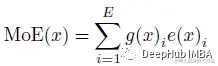 对于每个输入,只有一部分隐藏的表示被发送到选定的专家中进行处理。与MoE一样,给定E个可训练的专家,输入用x表示,MoE模型的输出可表示为: