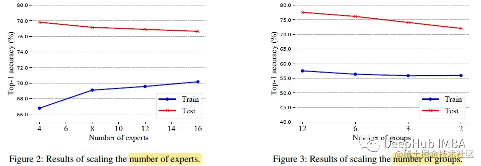 专家越多(可训练参数)导致过拟合,尽管专家越多意味着建模能力越强。更少的路由操作时,会有明显的性能下降。