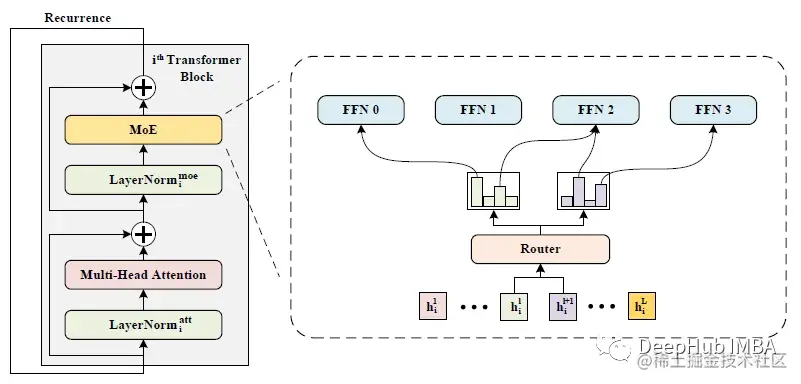 WideNet采用跨Transformer块的参数共享来提高参数效率,采用MoE层来提高模型容量。WideNet在不同的Transformer块中使用相同的路由器和专家。