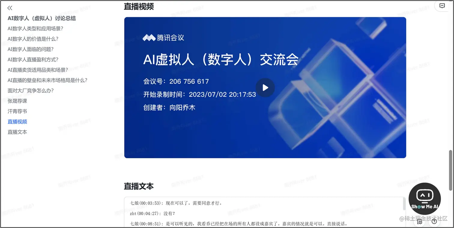 这是 @向阳乔木 7月2日举办的「AI虚拟人(数字人)交流会」的会议记录和要点提炼,也是截至目前对数字人分享最立体和透彻的内容。感兴趣可以前往飞书查看直播视频和文本!