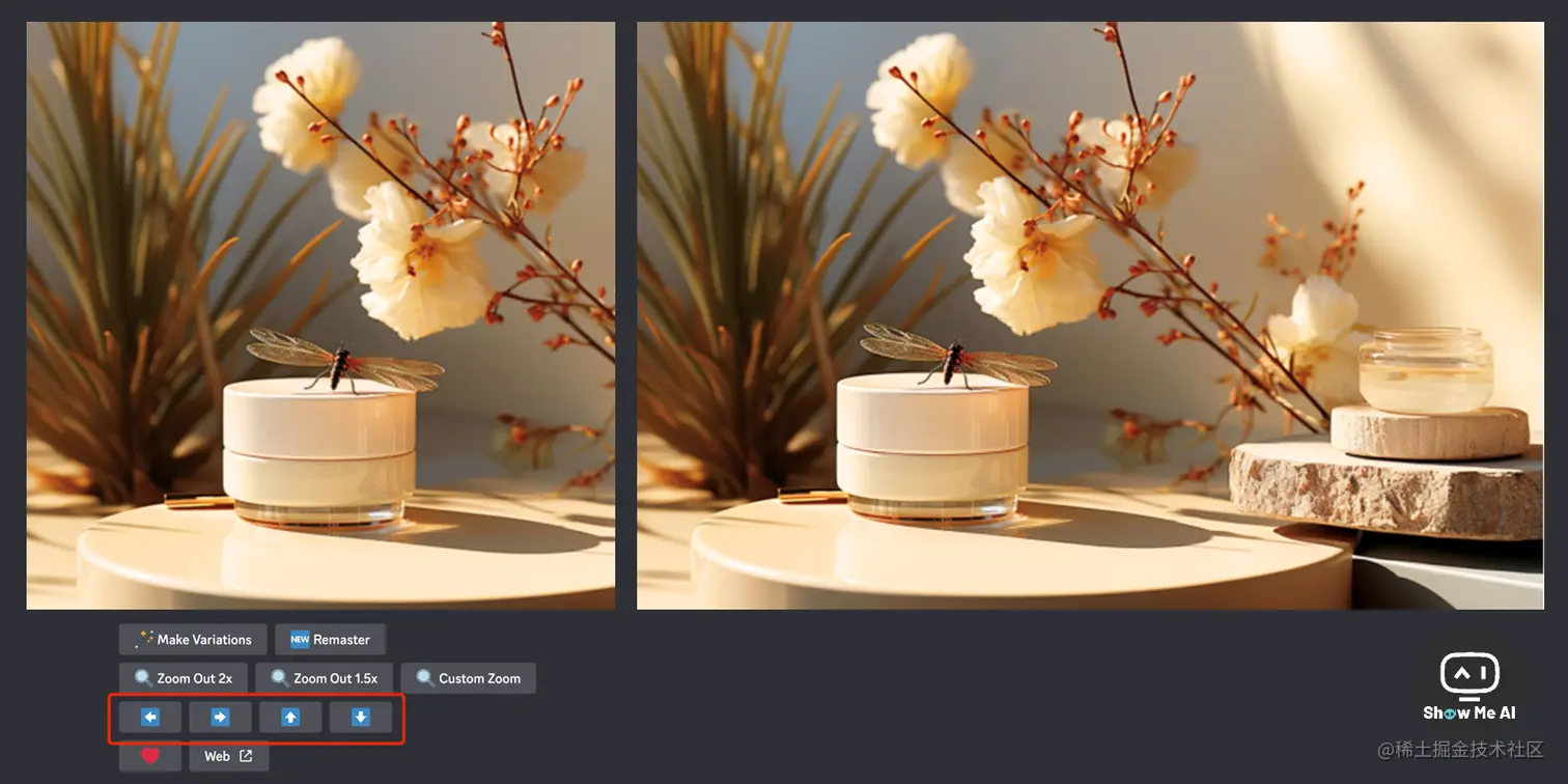 🤖 Midjourney 推出 pan 功能,上下左右,可以平移扩展图片场景