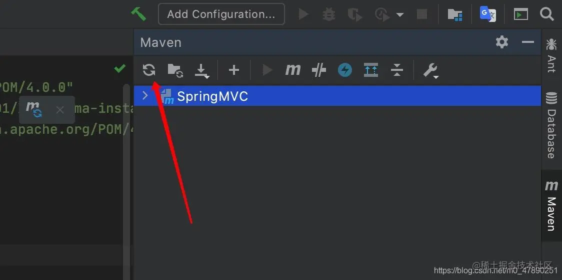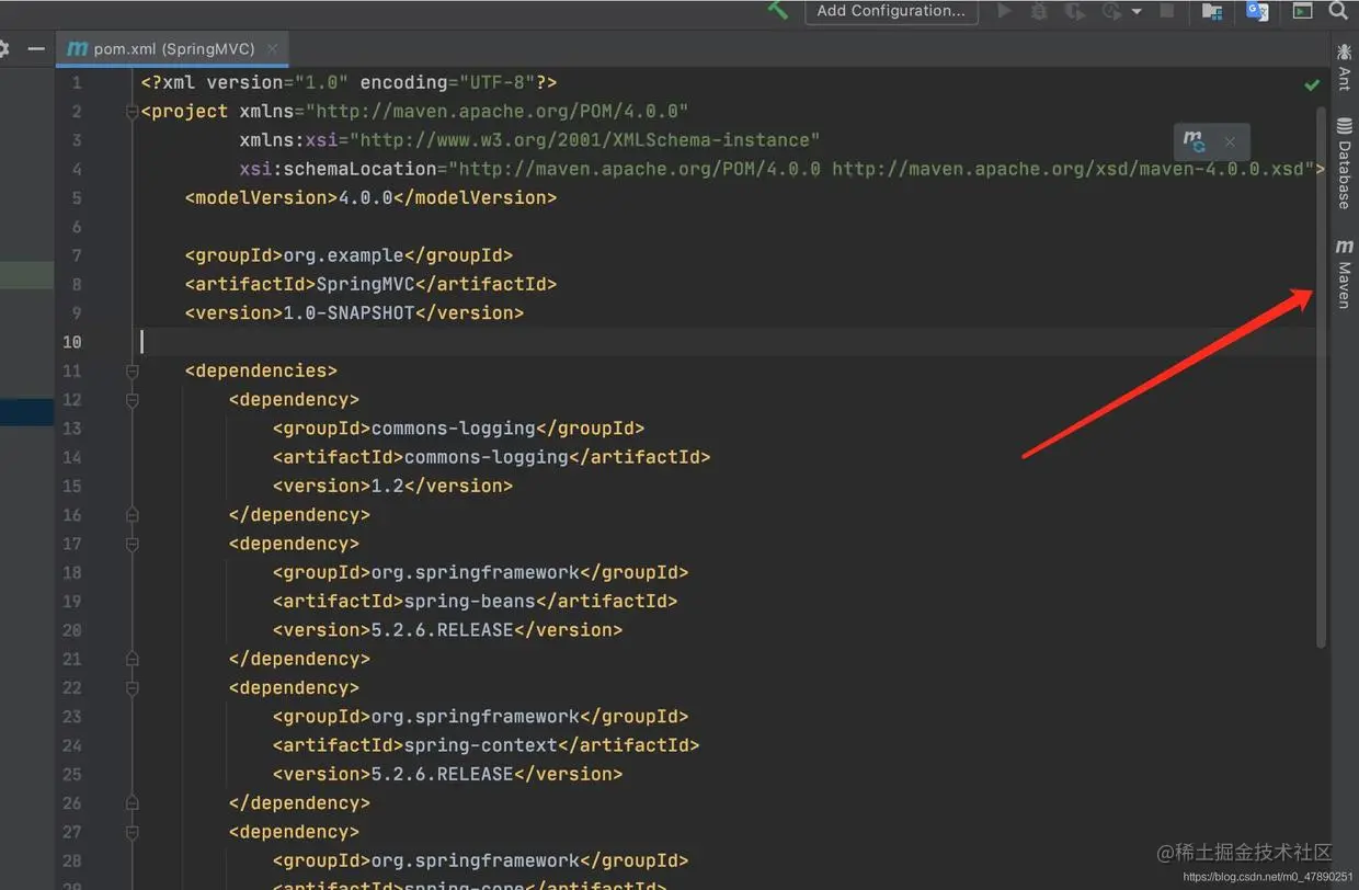 提示: 导入依赖Jar包后,需要点击右侧的Maven,然后刷新一下才能生效。具体如下: