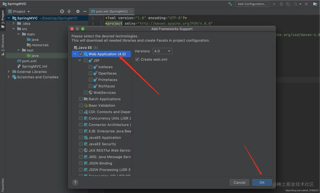 步骤3:创建完Maven项目后,点击项目名右键,选择添加框架支持(Add Framework Support…)
