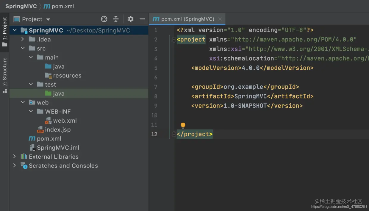 在此之前,需要在src/main/resources目录下新建springmvc-config.xml文件。