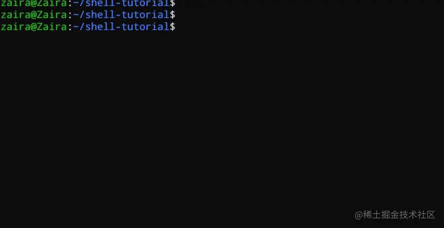 在上面的输出中,zaira@Zaira是 shell 提示符。当以交互方式使用 shell 时,它会$在等待用户命令时显示 。